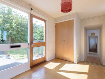 The current accommodation is spacious and well laid out, though the property would now benefit from refurbishment, as reflected in the valuation. A welcoming entrance hallway leads to a large sitting/dining room, where wide glass doors look out onto the garden and frame spectacular sea views. The kitchen and adjoining utility room provide practical space with access to the rear garden. There are four double bedrooms, a shower room, a WC, and a small sunroom.